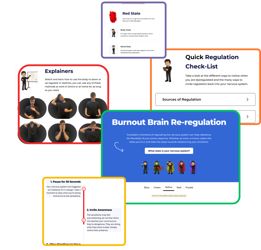 Select which state you feel your nervous system is in, follow the evidenced-based methods and rewire your stress in realtime.